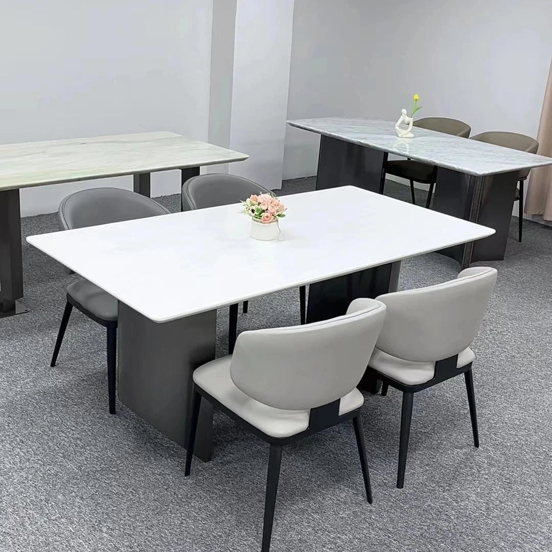 モダンミニマリスト大理石ダイニングテーブルセット - シンプルで洗練された海洋風デザインの長方形イタリアンラグジュアリー食卓。家庭にぴったりのスタイリッシュな選択!