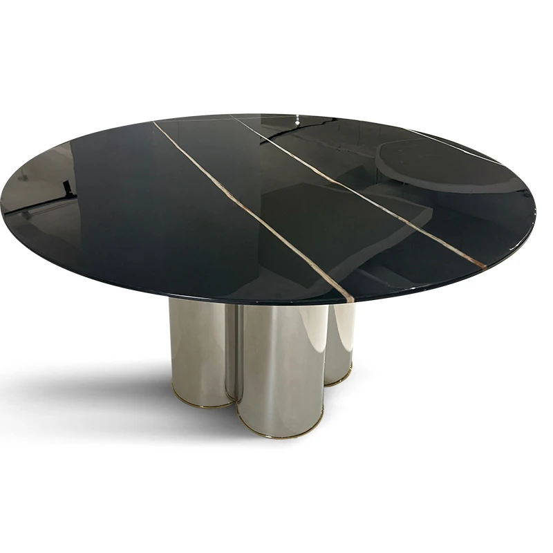 ローレンブラックゴールド大理石ダイニングテーブル - シンプルでラグジュアリーな高級住宅向けの天然大丸テーブル、新作の贅沢石製ダイニングテーブルで、特別なひとときを演出します。